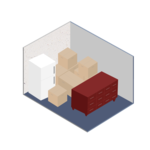 Fits furnishings of a mid-sized bedroom, including a queen-sized bed, a dresser, a TV and several small to medium-sized boxes.